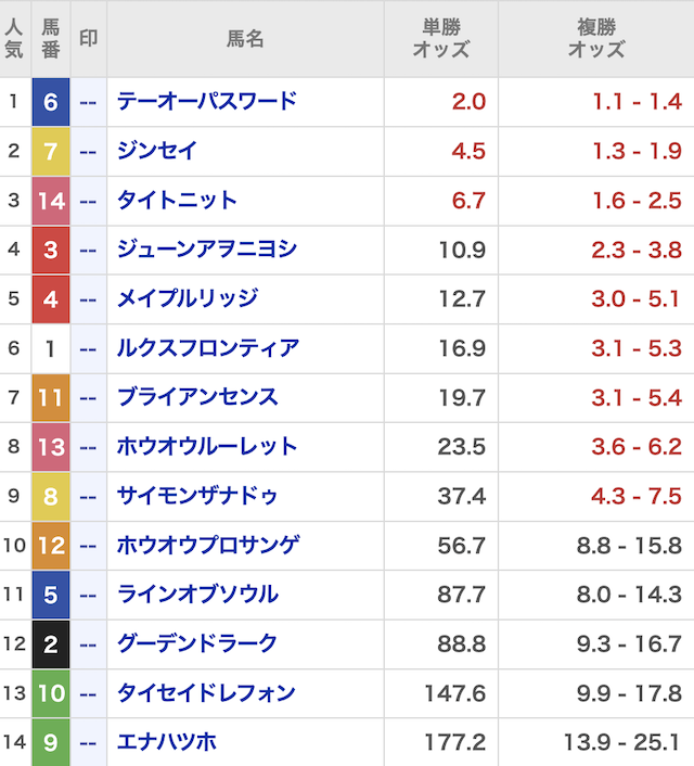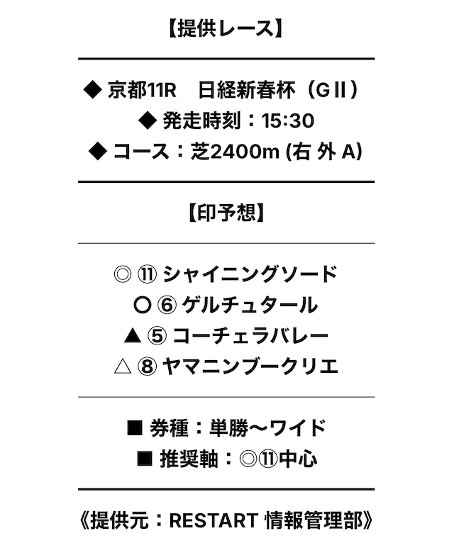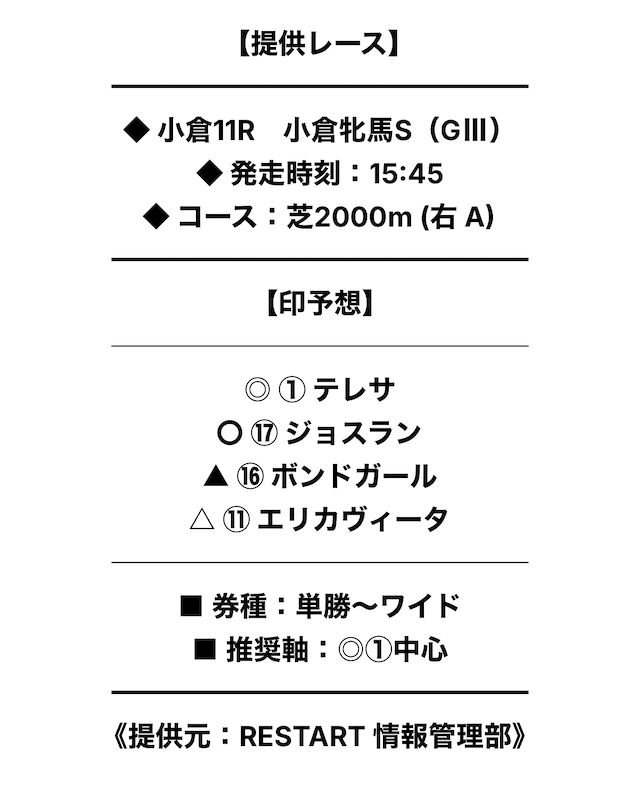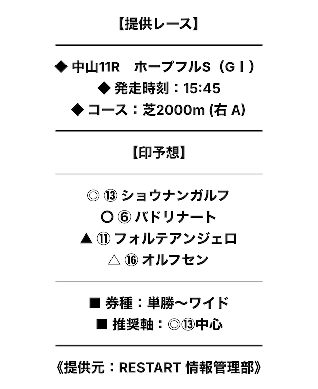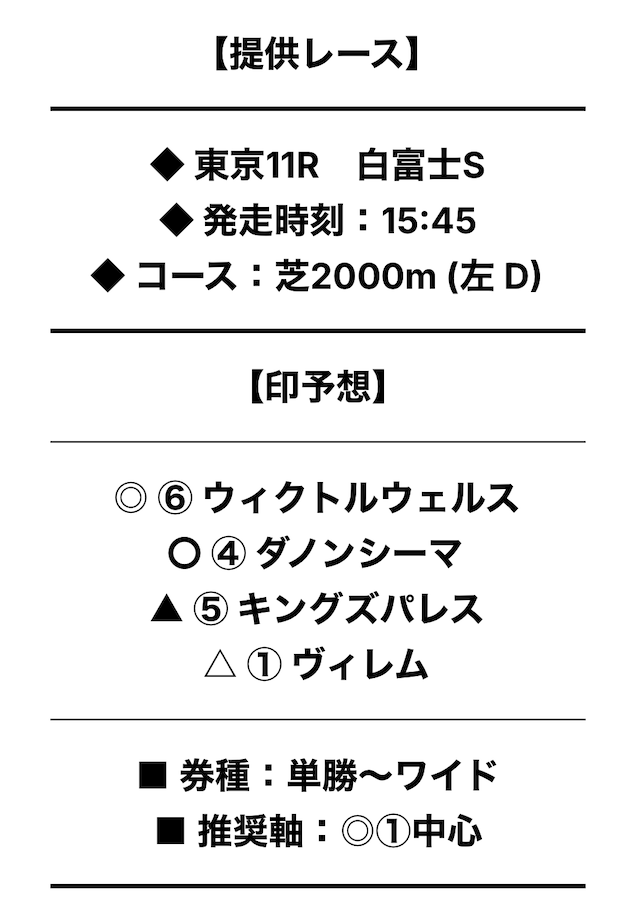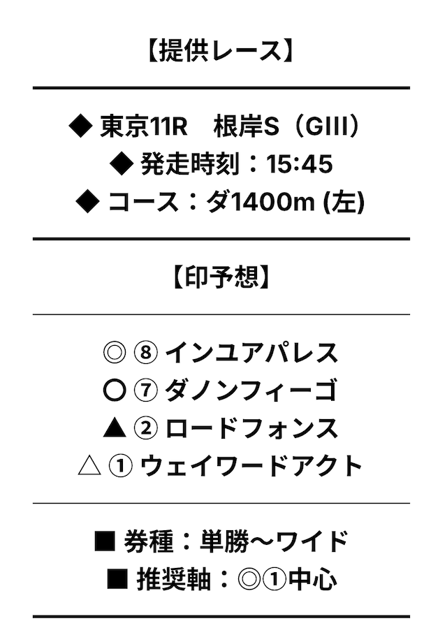 まずは、実際に提供された無料予想の詳細をご覧ください。