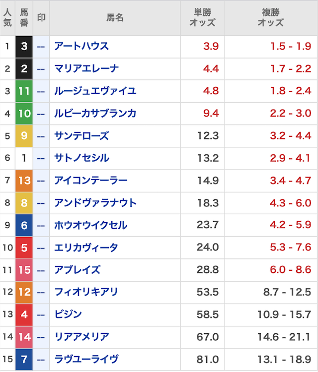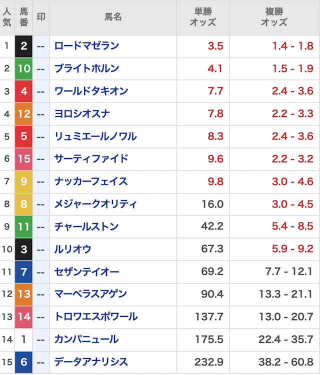 最終オッズで出走数や馬選びの詳細について確認していきます。