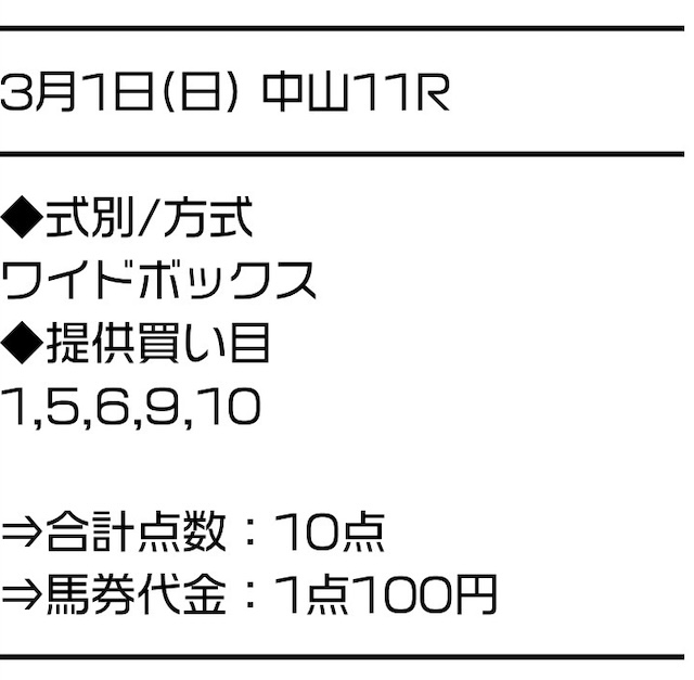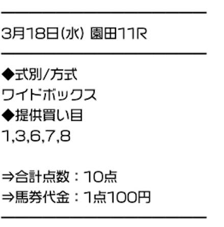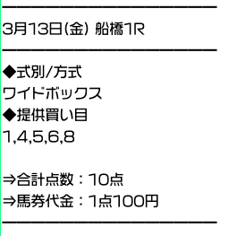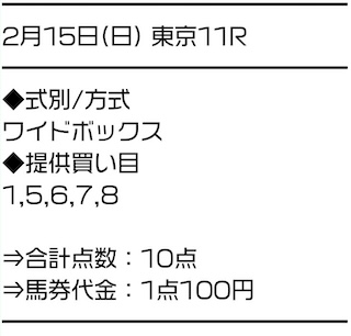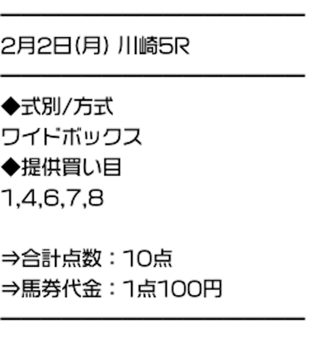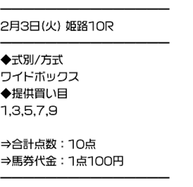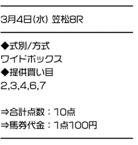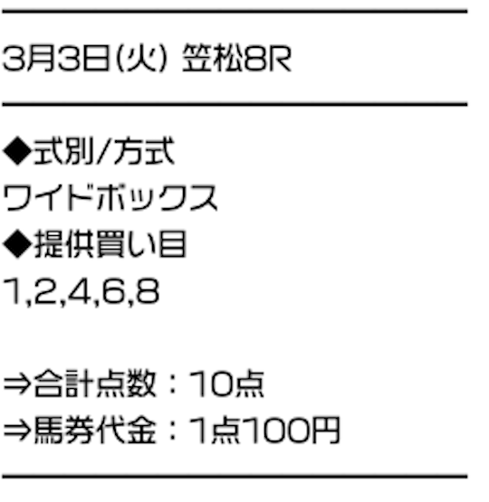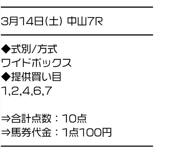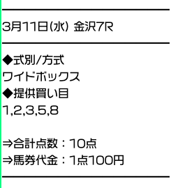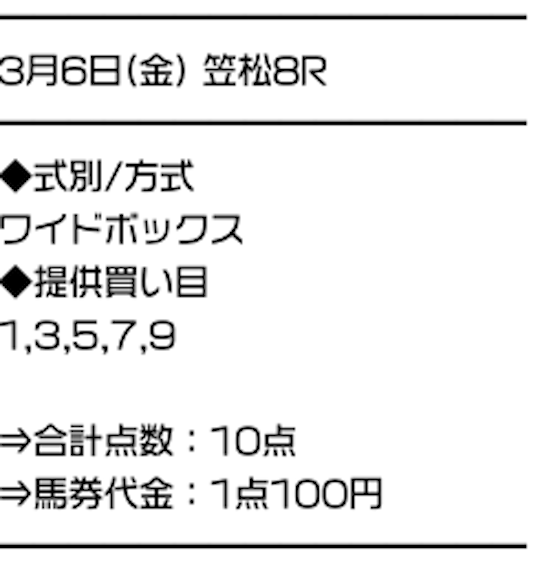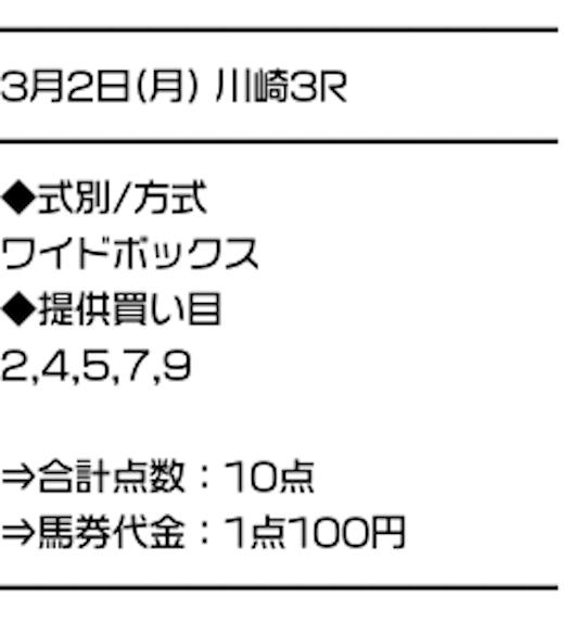 また提供された買い目は非常にシンプルで、初めて使う方でも迷うことは一切無し。