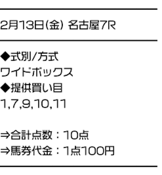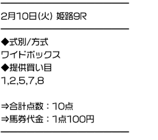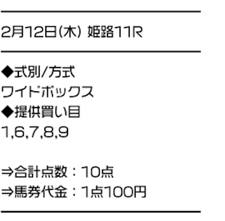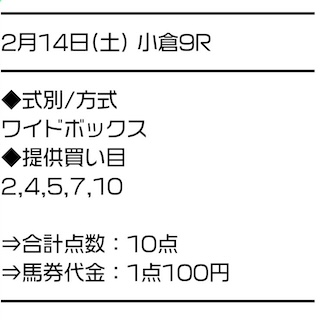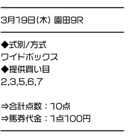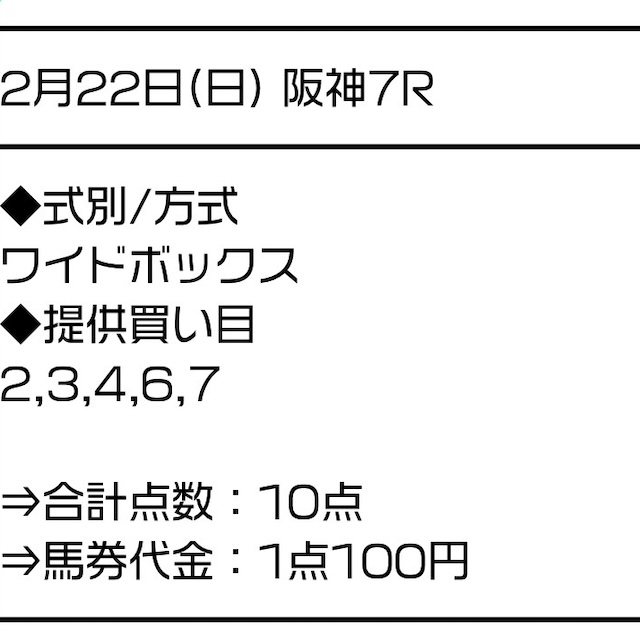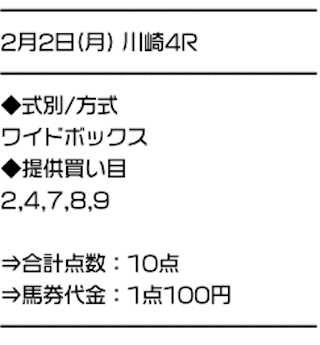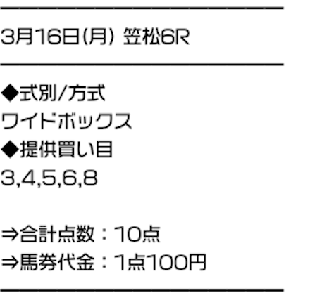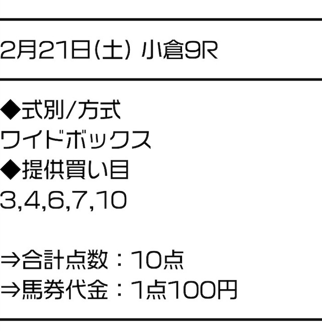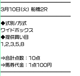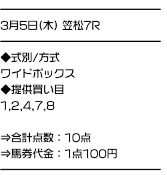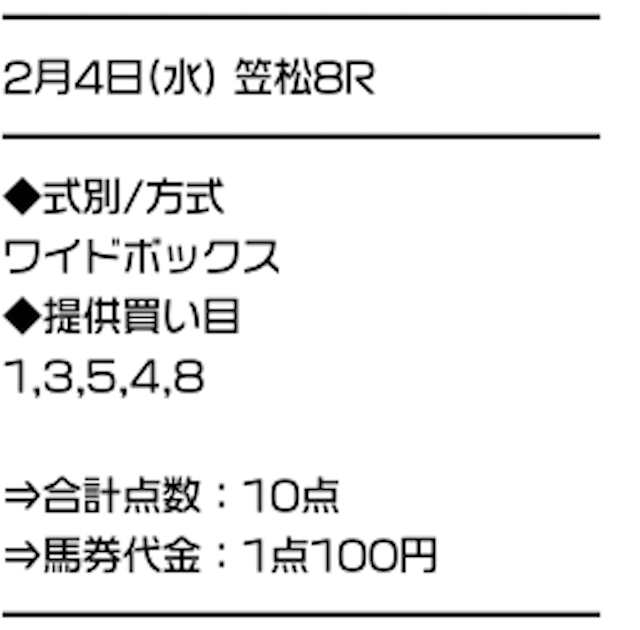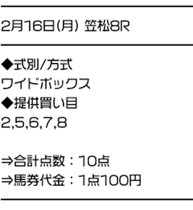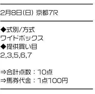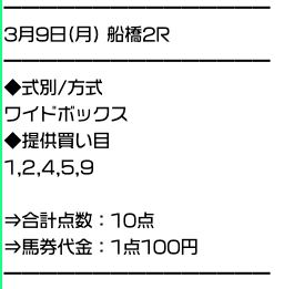 また提供された買い目は非常にシンプルで、初めて使う方でも迷うことは一切無し。