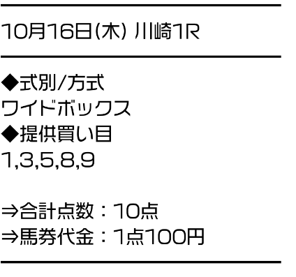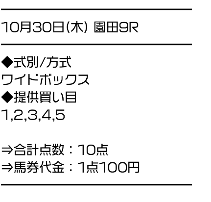 | 的中率 | 回収率 | 投資金額 | 払戻金額 |