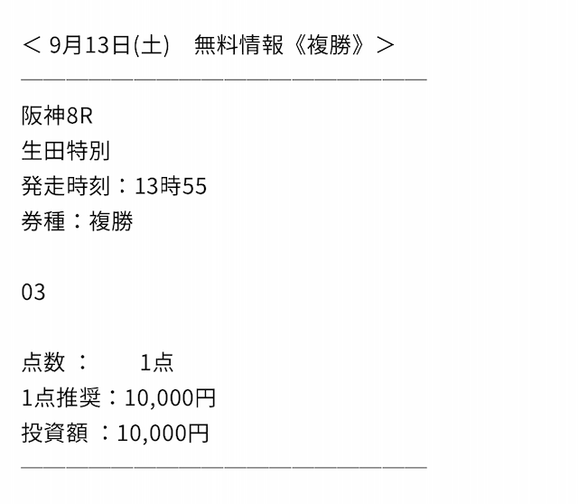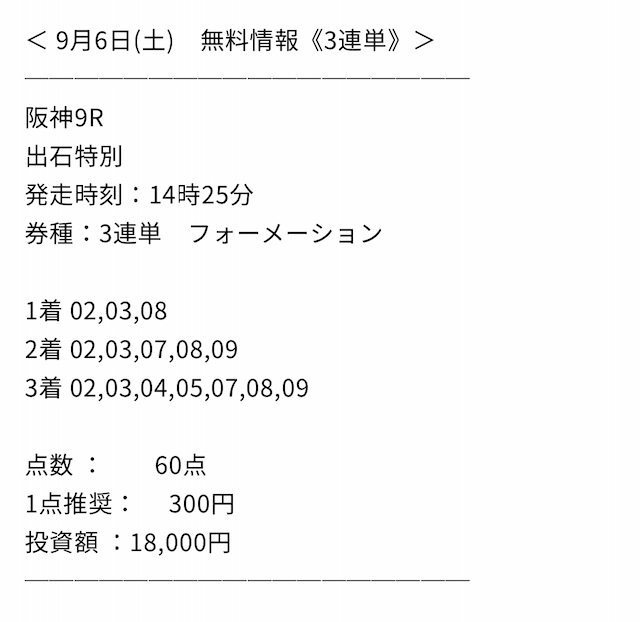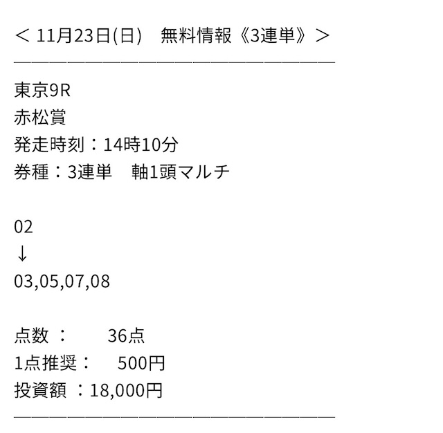 最近は安めの的中多めだな。 情報料安いやつに参加しても全然旨味がない。 野村とか相馬眼みたいな、高価な商品もやっていかないとガッツリ稼げそうにないな💦