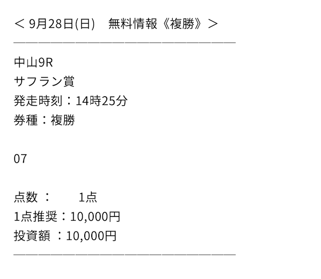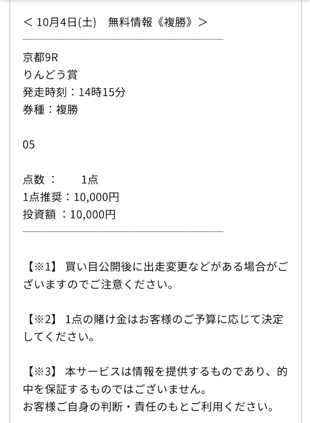 まだ無料情報しかやっていないけど、ここは期待できそう。無料情報がよく当たるのもあるけど、担当の方がとても丁寧だし返信が早い。地味にこういうの大事。