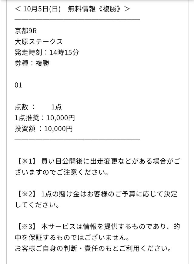 情報料を見てぶったまげた!! これは、個人的に馬券買ってても回収できないレベル^^; こんな情報に参加できる方々が羨ましい