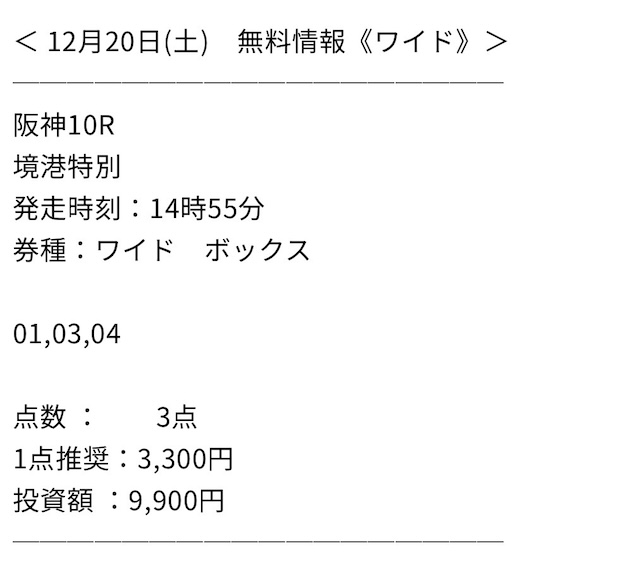 思ったんだけど、ここの商品って結構割引してくれてるのに、高配当のリターンがデカいのがありがたい。今週は、前回不的中だったパーフェクトロジックに参加したんだけど、いい結果でることを祈ってます!