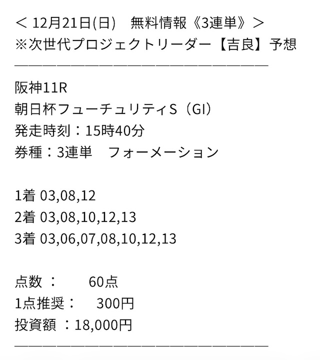 | 有料予想 有料予想を総合的に判断した評価 | 3.0 |