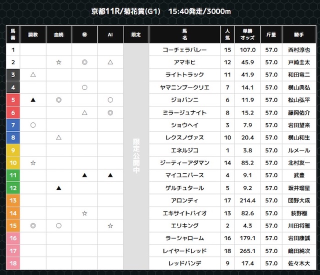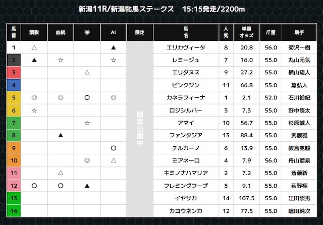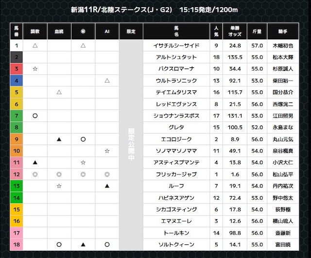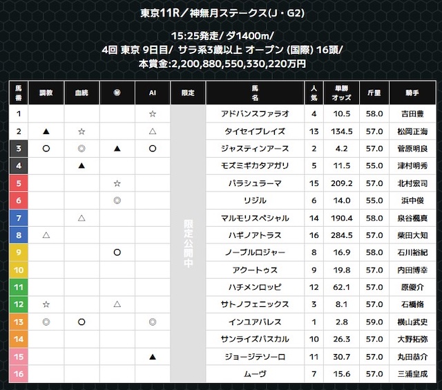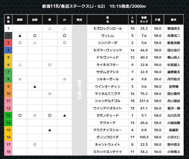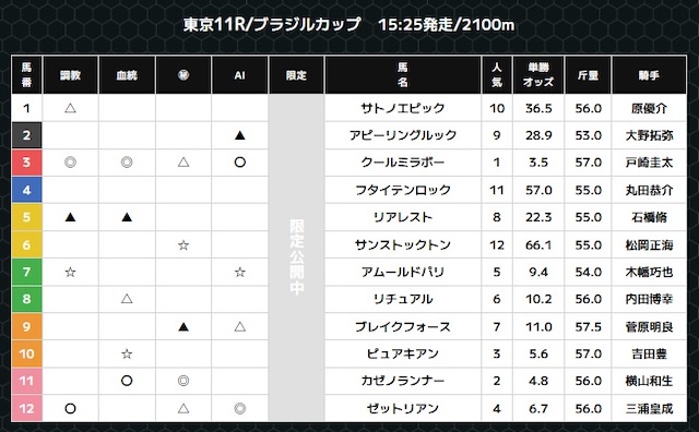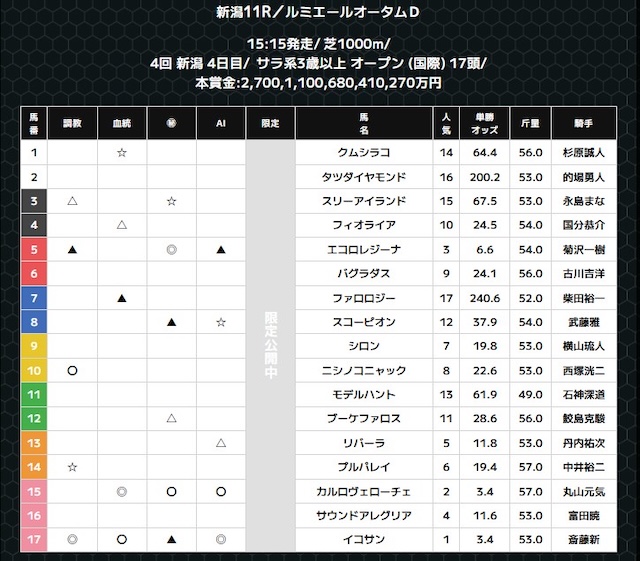 良いなこのサイト。普通に当たるだけじゃなくてちゃんと特定の評価軸から見た印の意図も分かりやすい。玄人向けなのはそうだけど、使いこなせば無双できると思う。