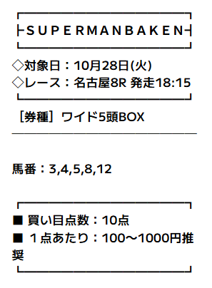そのため、本スーパーマンバケンの買い目は「堅い決着を想定している」というのは間違いなさそうで、本レースがしっかり堅めに終われればその点に関しては評価できるでしょう。