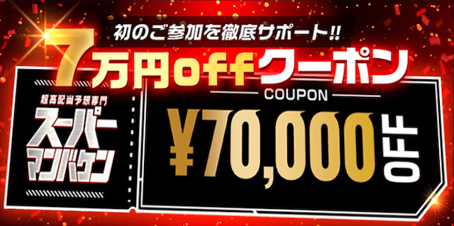 - 初回は7万円引きで有料予想を購入でき、たった1回の購入で1撃帯封を獲得!