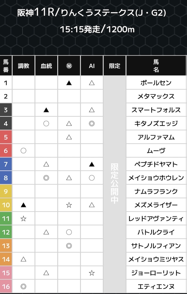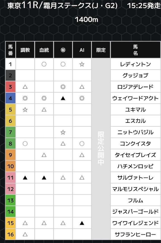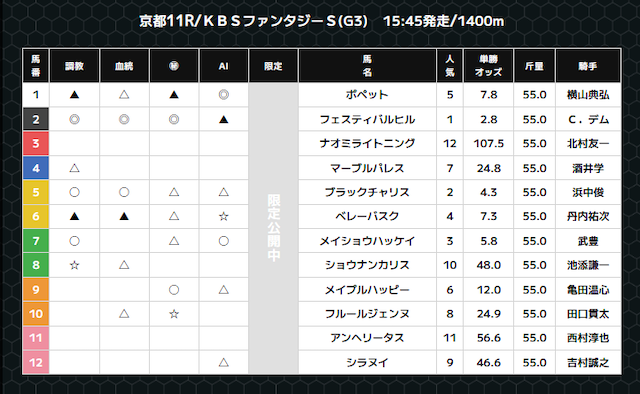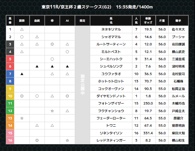 良いなこのサイト。普通に当たるだけじゃなくてちゃんと特定の評価軸から見た印の意図も分かりやすい。玄人向けなのはそうだけど、使いこなせば無双できると思う。