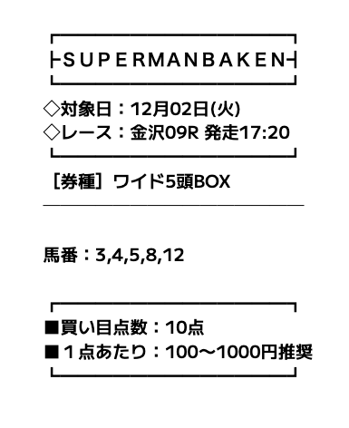本記事では競馬マスターズが実際にスーパーマンバケンの予想を使い、