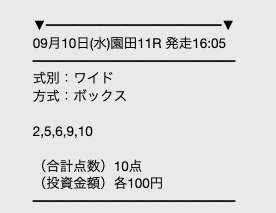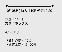 それでは早速、私がこれまでに参加した有料情報の結果と実際に公開された買い目をご紹介します!