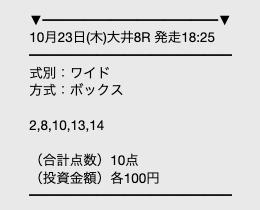 こんなに当たるならない1点100円とかいう弱気な設定やめてくれよwせっかく万馬券あたったのに推奨通り買ってたからあんま稼げなかったわw
