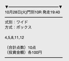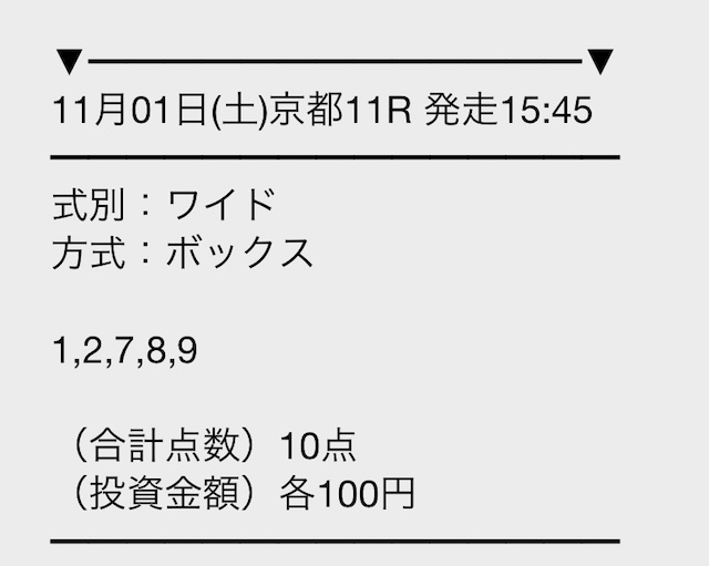 それでは早速、私がこれまでに参加した有料情報の結果と実際に公開された買い目をご紹介します!