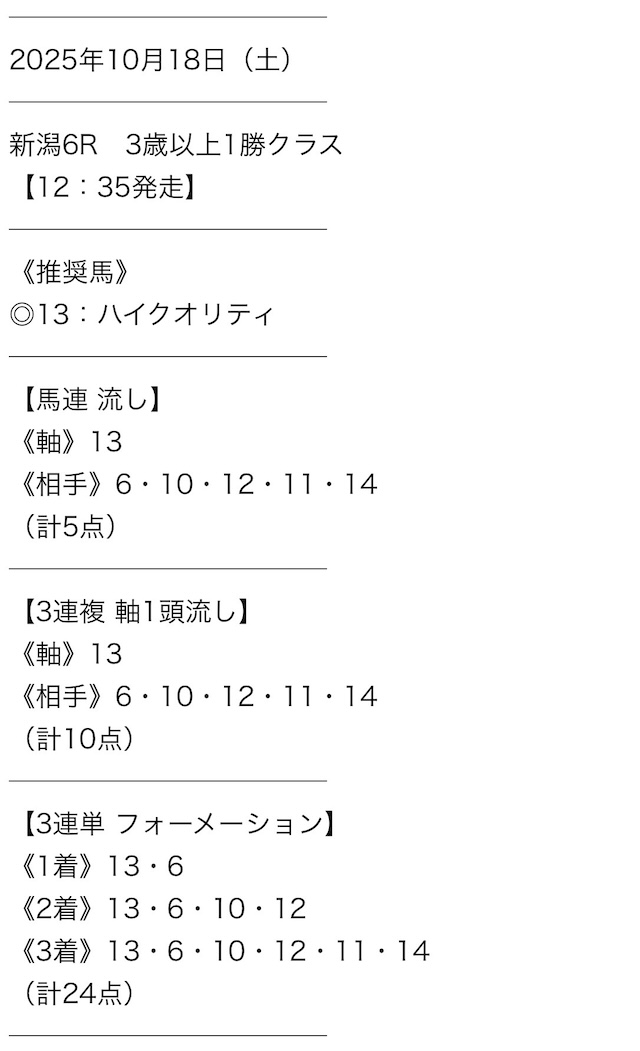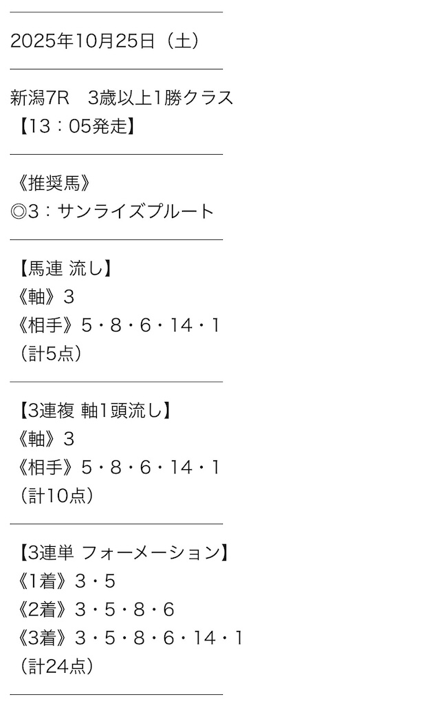 - 新聞や前走着順だけでは見抜けない、プロならではの厳選された買い目