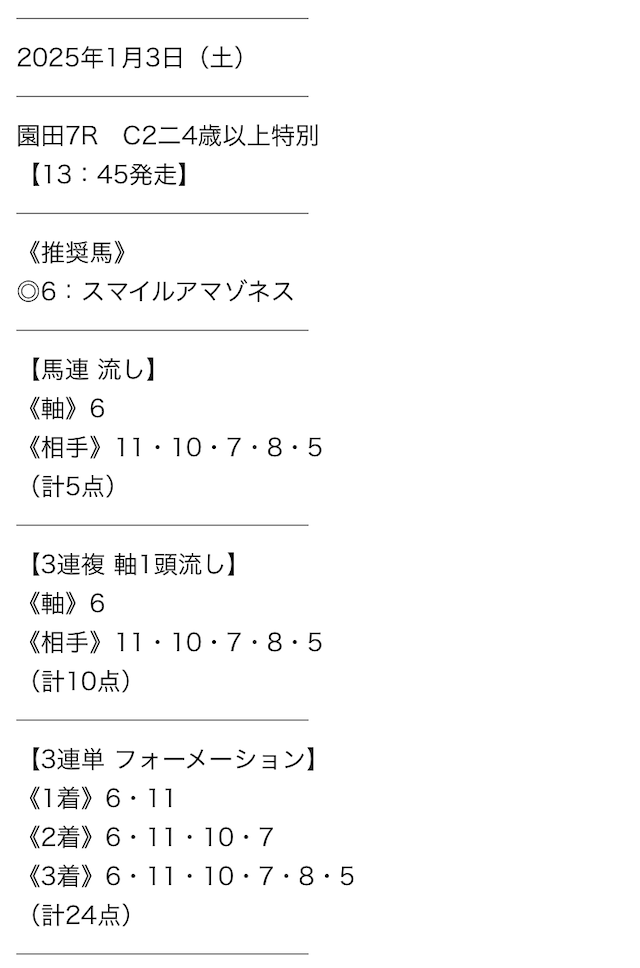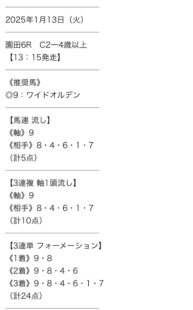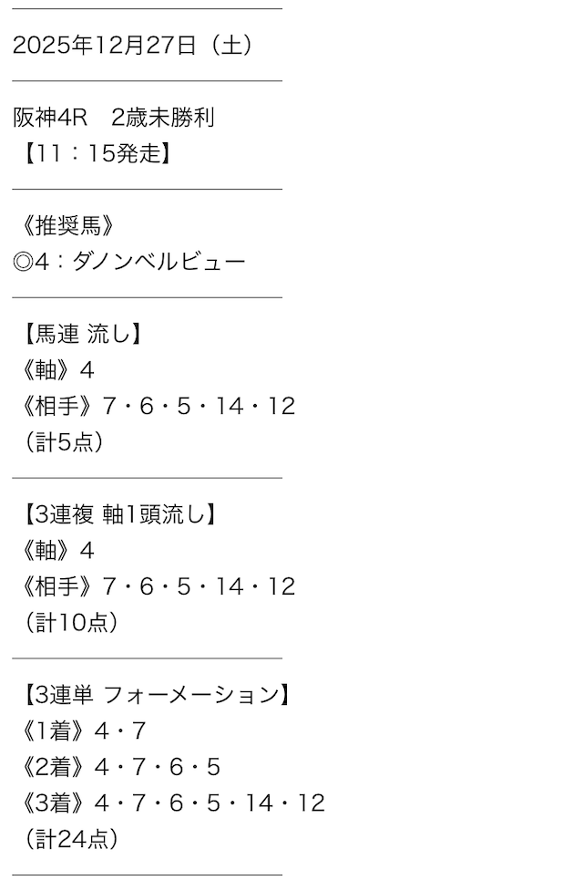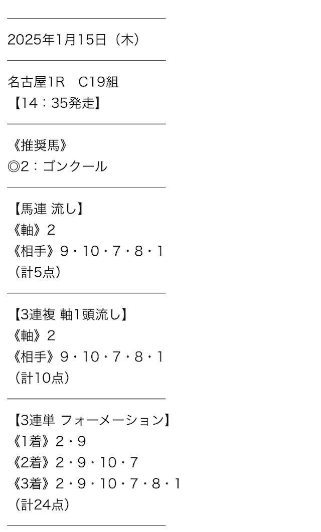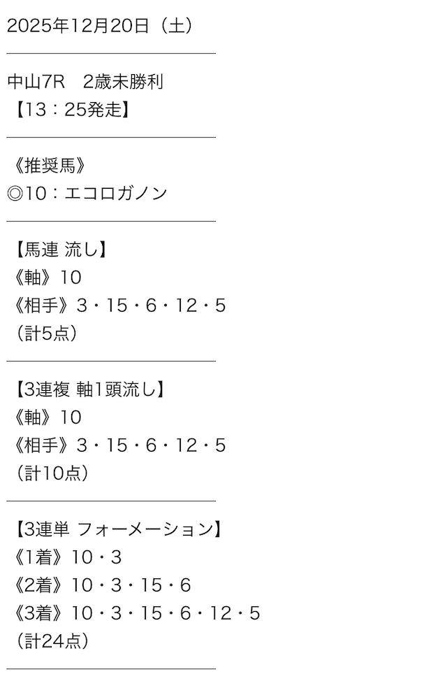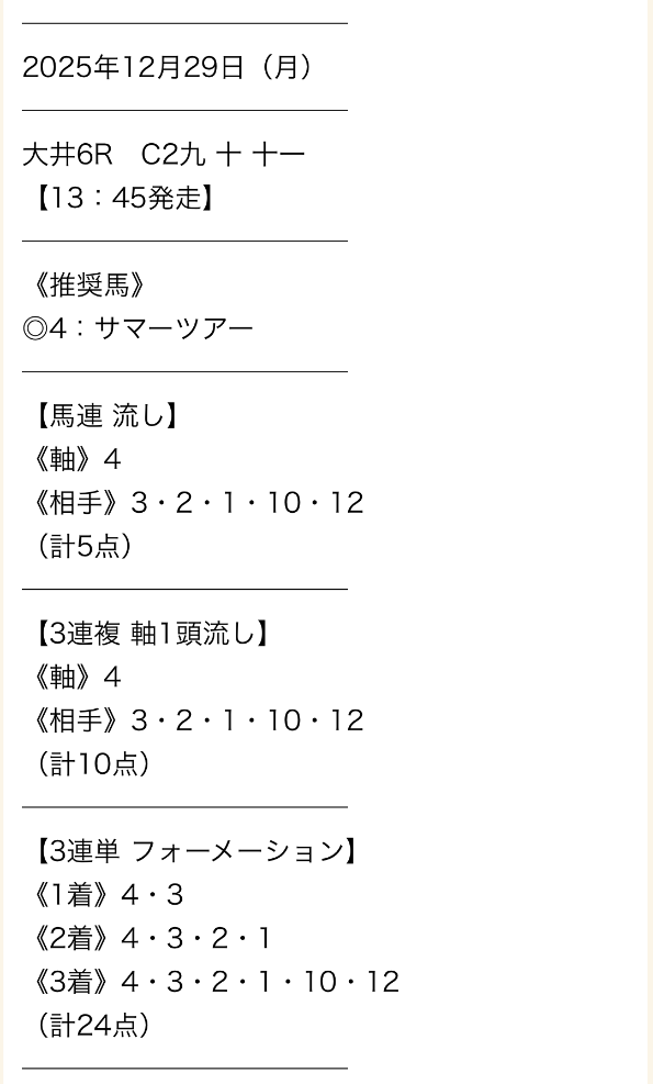 - 新聞や前走着順だけでは見抜けない、プロならではの厳選された買い目