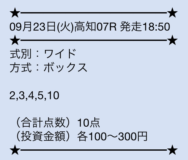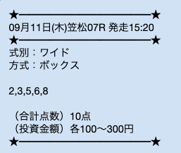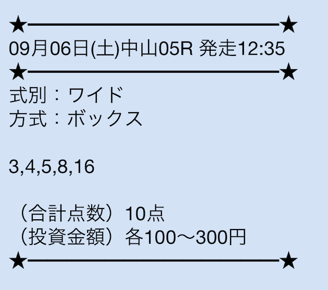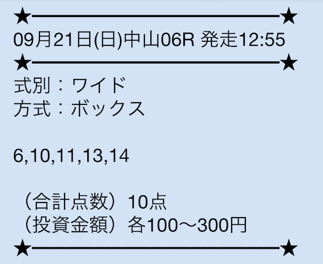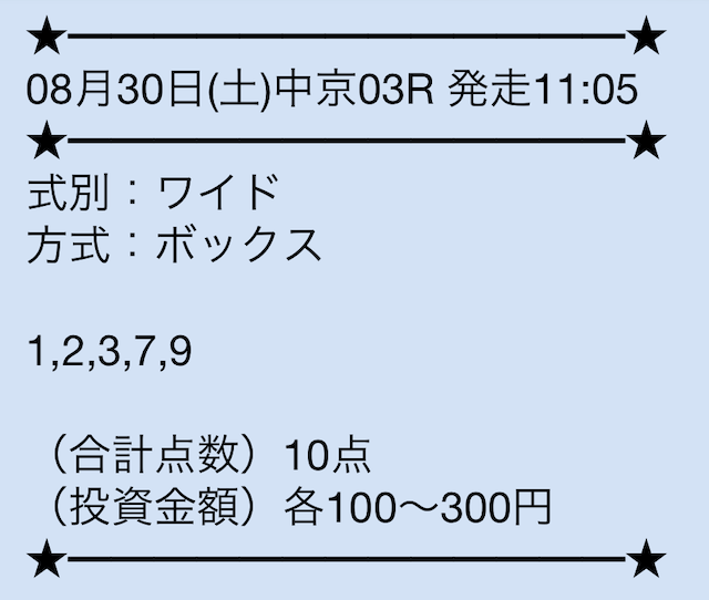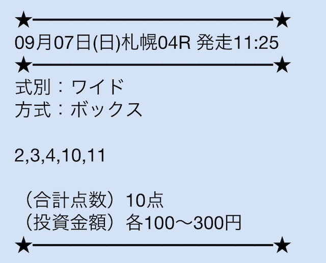 少額投資を推奨していることや、1番人気の馬を外していることを考えると、ガチガチな結果よりも配当を意識した予想を提供するスタイルなのでしょう。