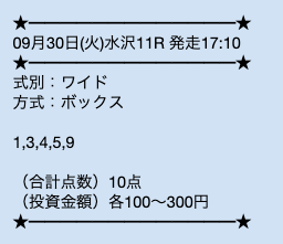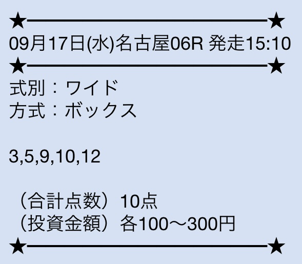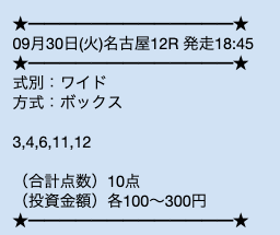 推奨投資金額 | 計5,400円(計18点・1点300円) ※競馬マスターズは1点1,000円で参加 |