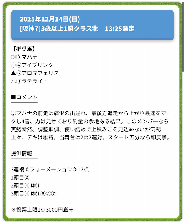 ※公開される買い目の例