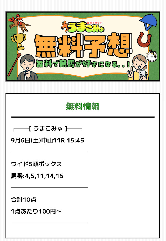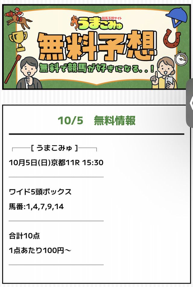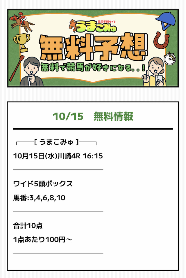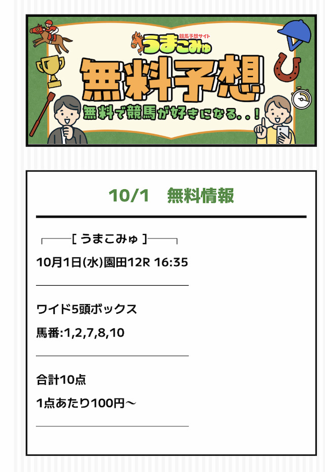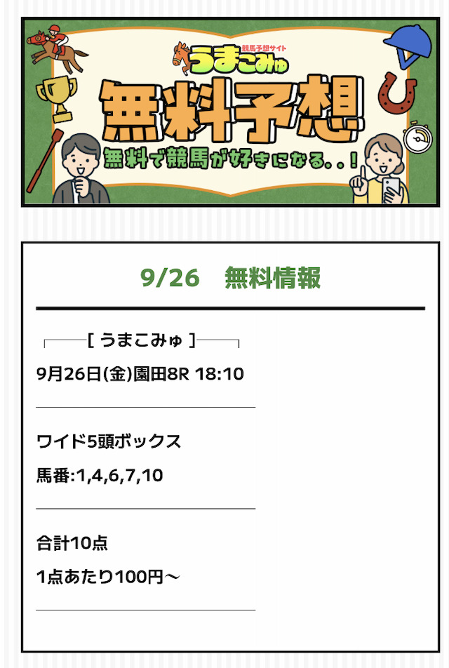 それではまず、うまこみゅの無料予想の検証から進めていきます。