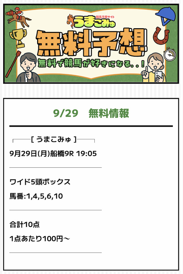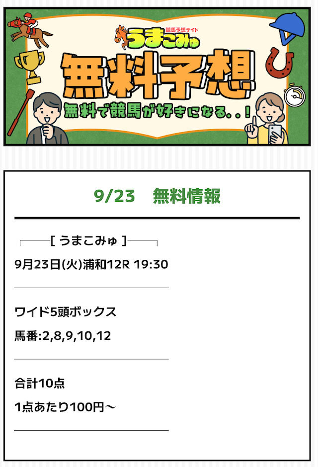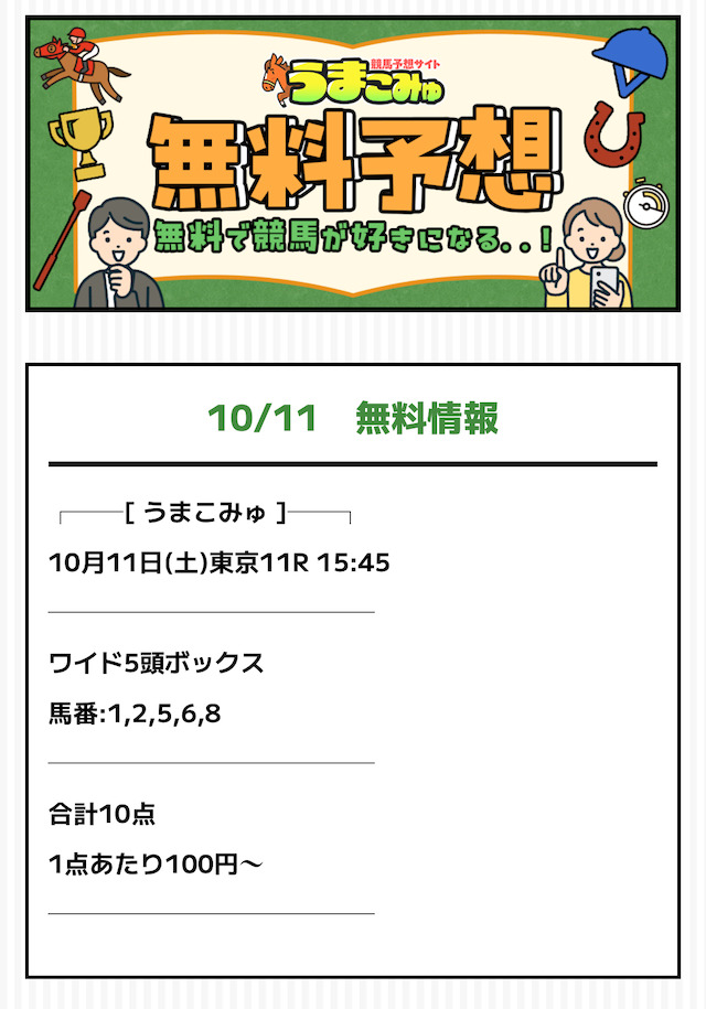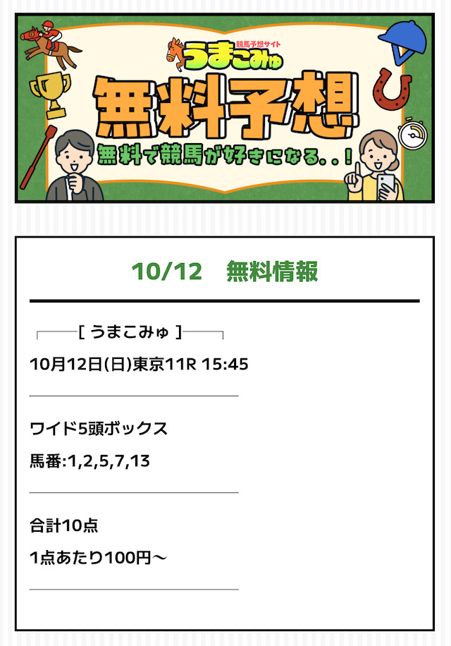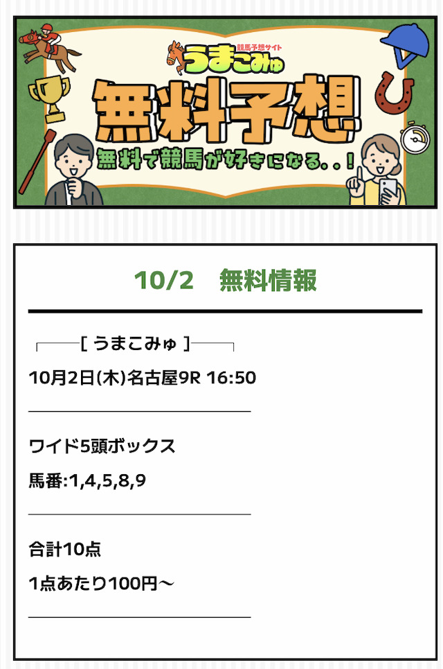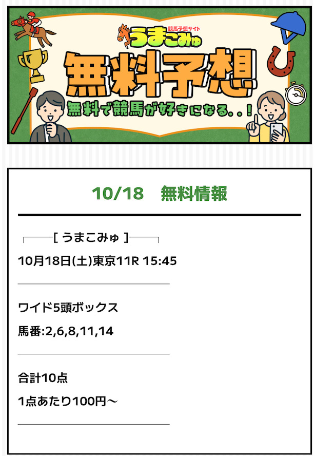 それではまず、うまこみゅの無料予想の検証から進めていきます。