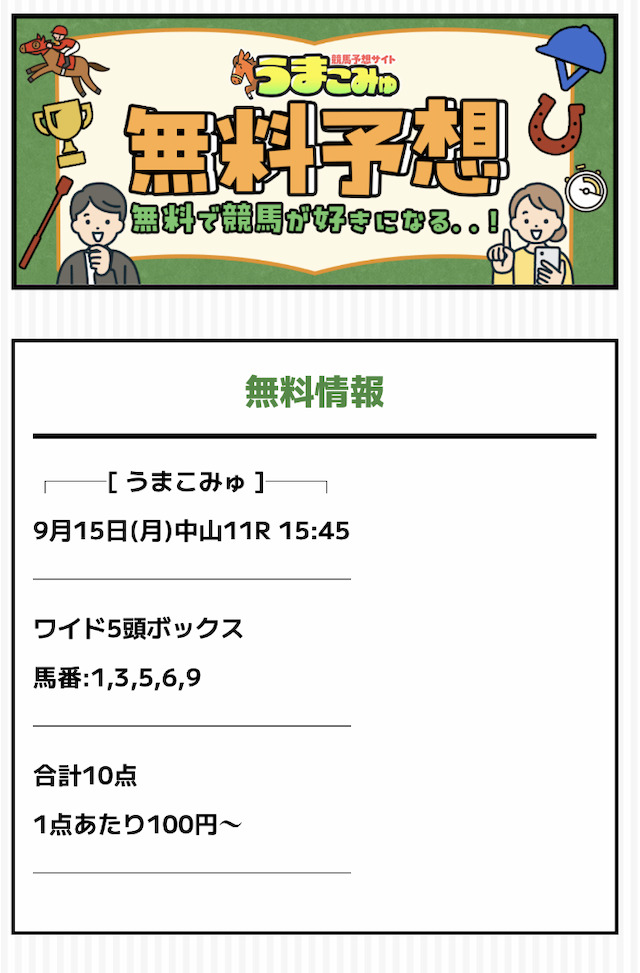 安定の無料予想、破壊力抜群の有料予想と、うまこみゅひとつで欲しい要素が完結しているため、どんな方でも使いやすく稼げるのが魅力です。