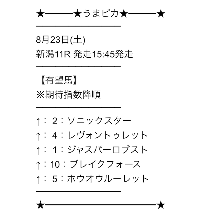 上から順に期待度が高い馬が記載され、買い目公開などとは異なり自由度が高いことが特徴です。