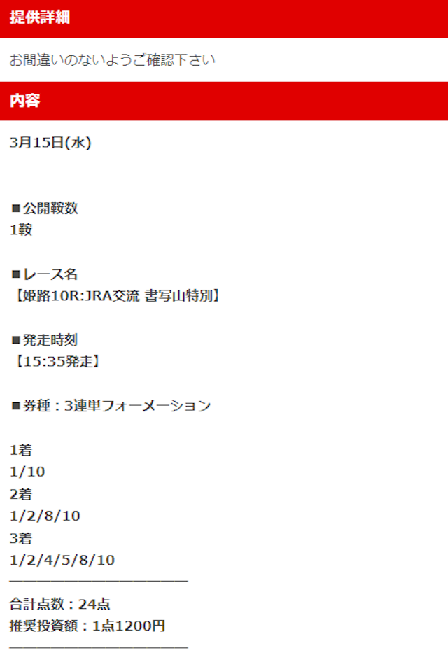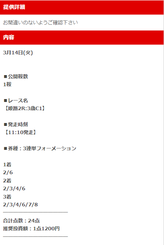 - 予想サイトの的中情報の提供