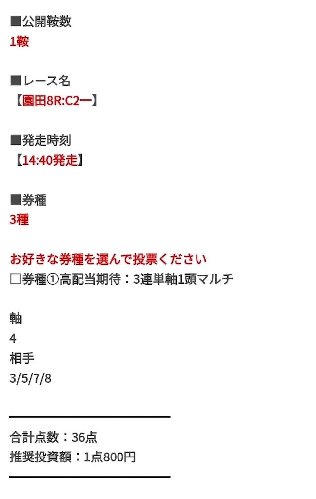 チャンスが多いのは嬉しいですが、1レース当たりの投資金額は3万円前後とかなり高め。