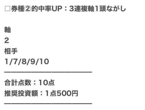 | 勝負方法 | 3連単・土日2鞍 |