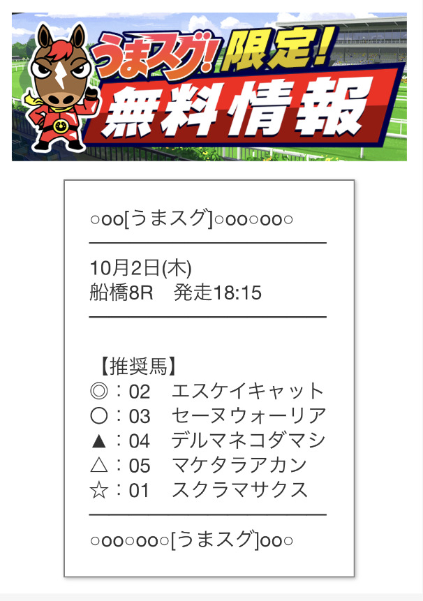 最高評価付けるには使いきれてないけど、まあかなり優秀な方ではないでしょうか。今2勝1敗で、自分で予想もしてみましたがうまスグのほうがうわ手でした。無料なんで、今のところは満足です。
