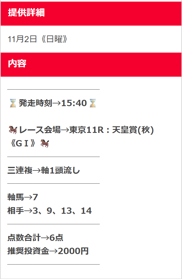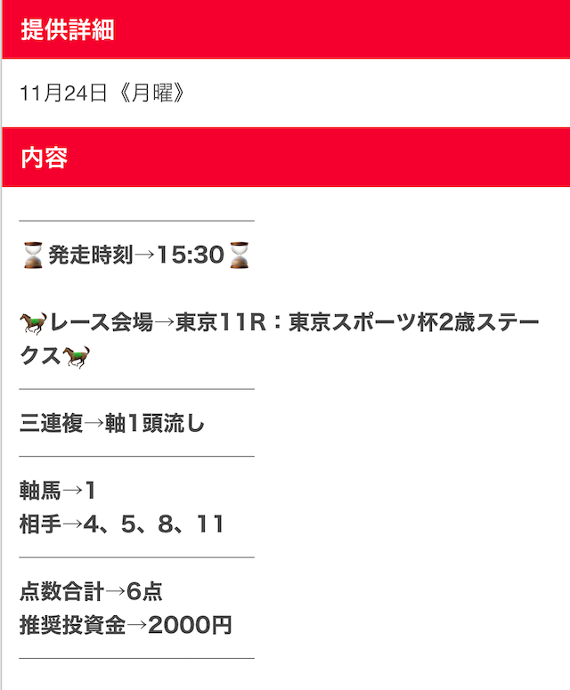 手間はほとんどありませんので、ぜひ登録してまずは無料予想を受け取ってみてください!