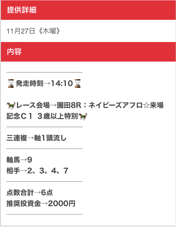 無料予想だけ使ってるけど、今のところ4勝2敗。収支はプラスだけど、もう少し安定して勝てたら最高かな。