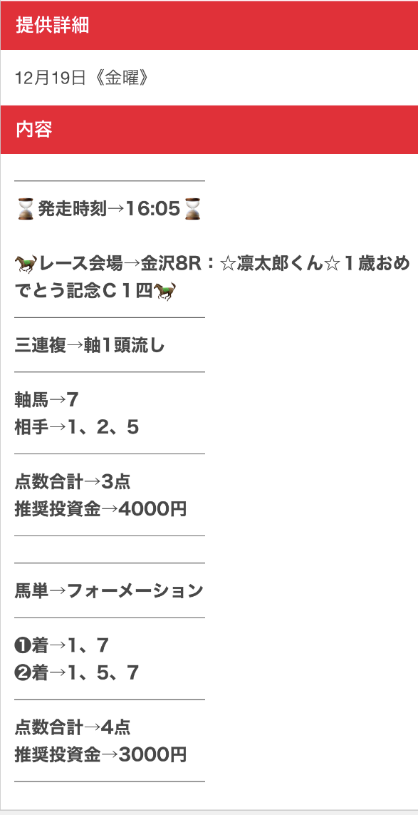 特に「軸馬が穴馬だと当たらない時があった」という内容に関しては注意が必要そうで、この口コミ投稿をした方は同条件で3回中2回不的中になったとのことでした。