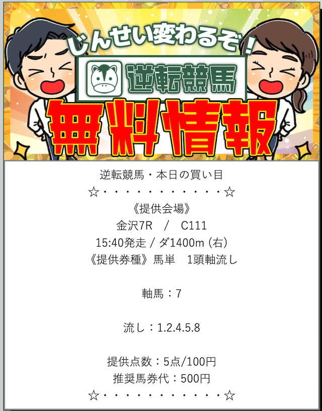 「ワンコインでじんせい変わるゾ!」のキャッチフレーズが目を引く逆転競馬。