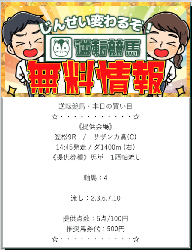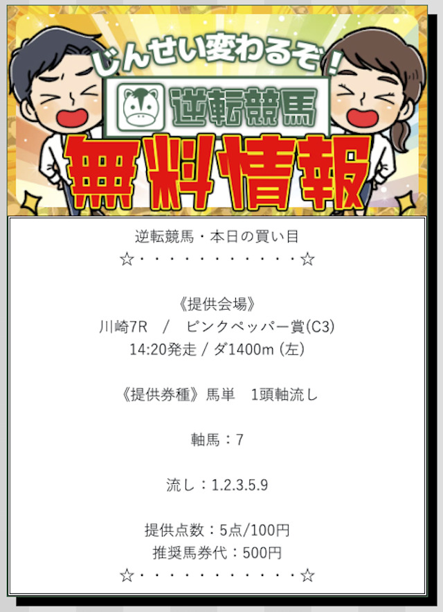 逆転競馬の新規限定の特典が良い感じだし継続の特典もあるから常にお得に参加できてる