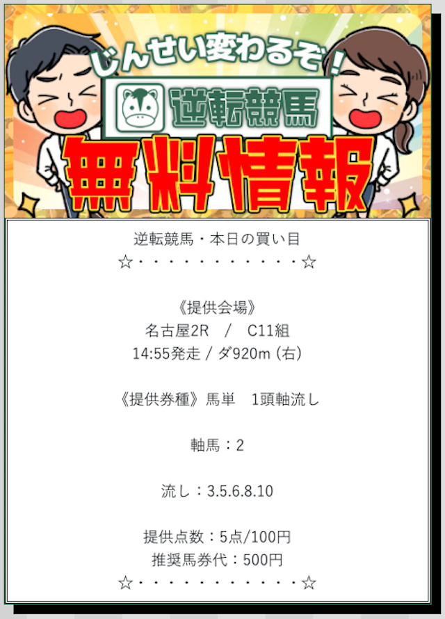 ほんとにワンコインあれば稼げるんかいw5点予想のサイトってホントに稼げないこと多いけど、逆転競馬は馬単でもバッチリ当てるからほんとコスパ良いわ。ちなみに、自分先々週は平日全的中で25万くらい稼いでます。最強です。