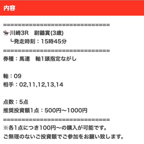まずは、実際に提供された無料予想の詳細をご覧ください。
