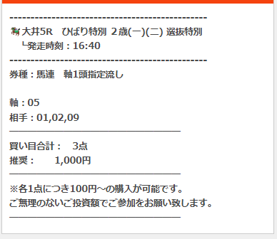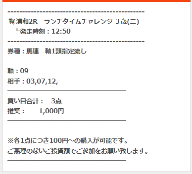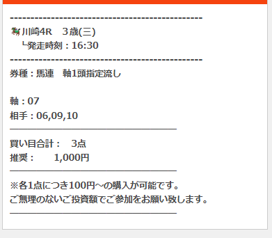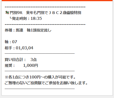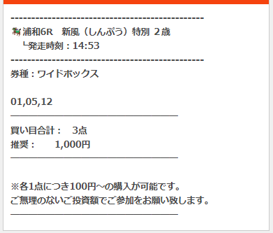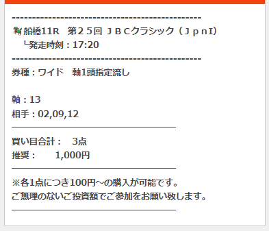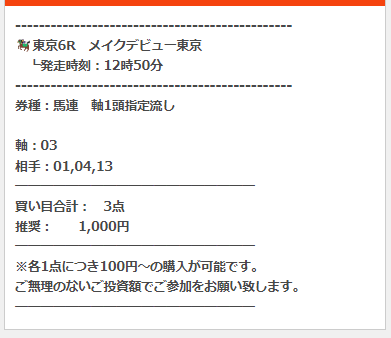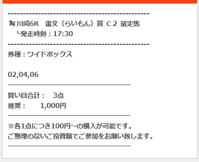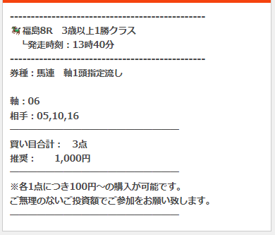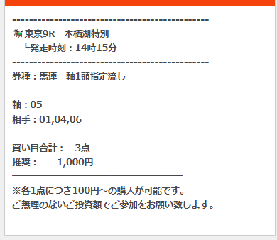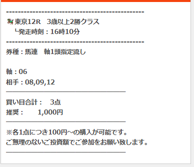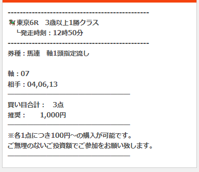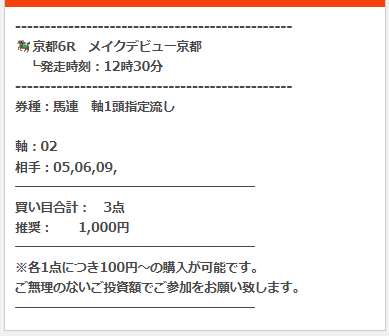 買い目点数はたったの3点と、かなり点数を絞った予想です。