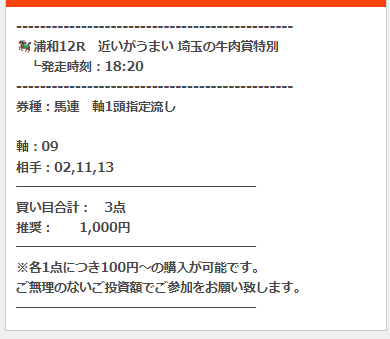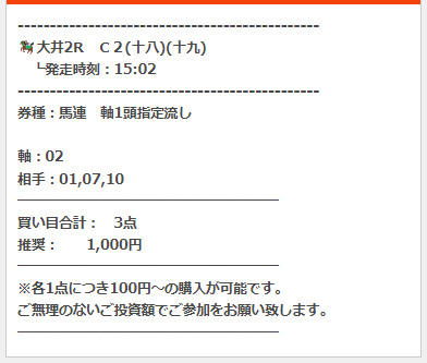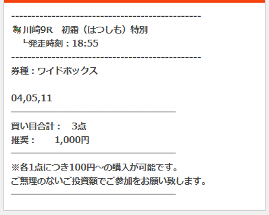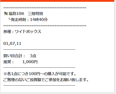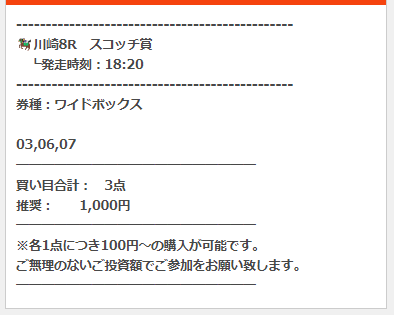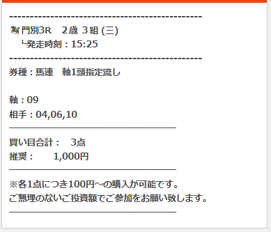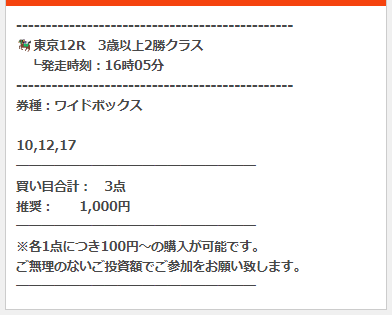 | 買い目点数 | ワイド:3点 馬連:3点 |