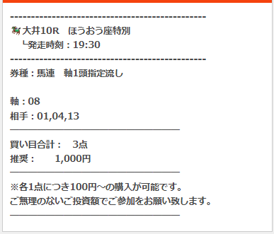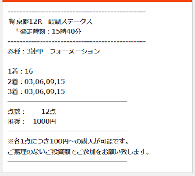 まずは、実際に提供された無料予想の詳細をご覧ください。