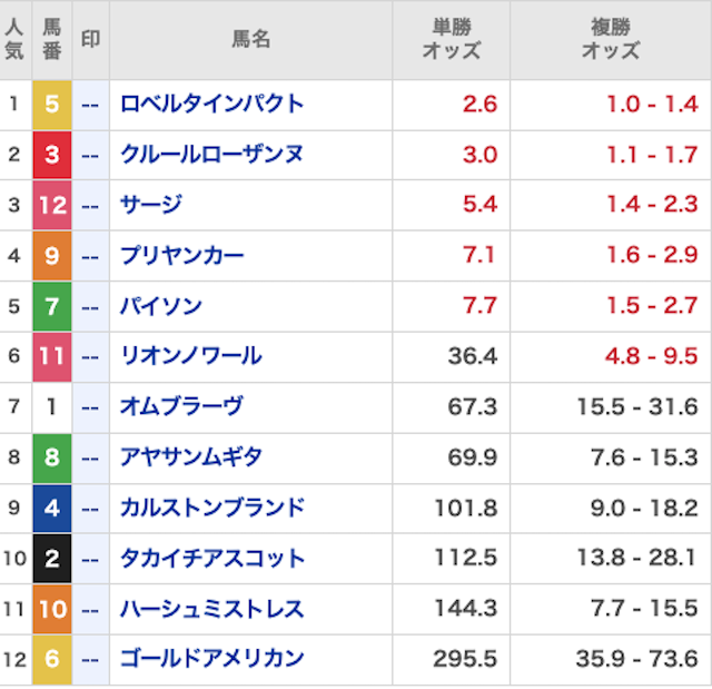 | ⑫サージ | 3番人気 | 5.4倍 |