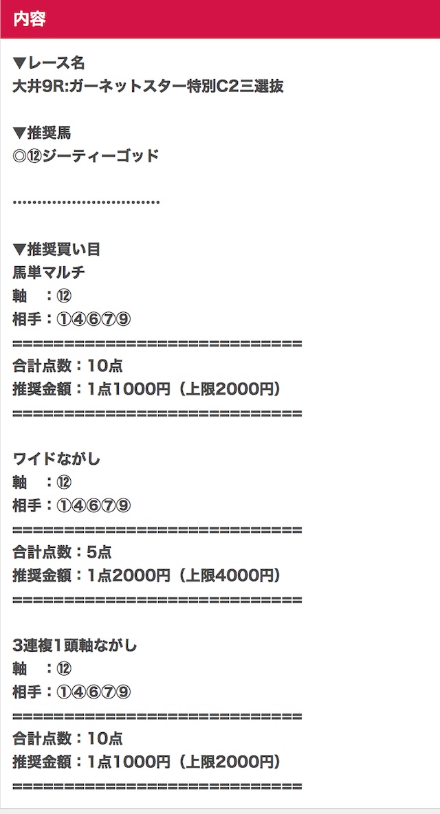無料予想ではとにかく外れることが少なく、的中を連発。