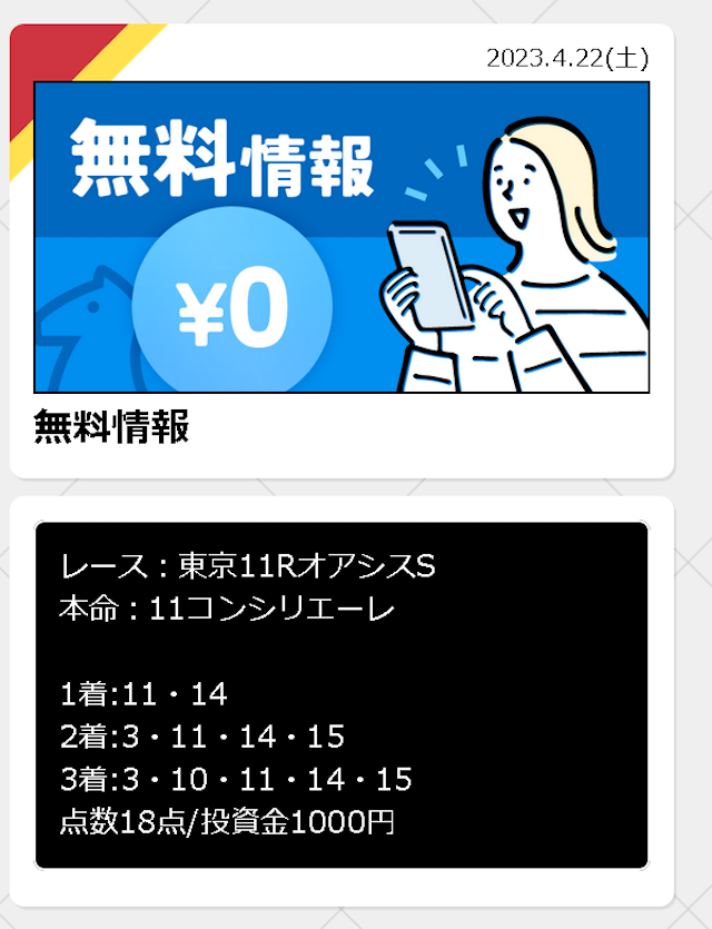 - 2023.04.16無料予想に初参加