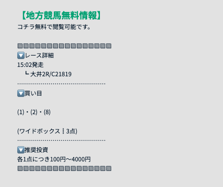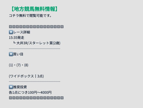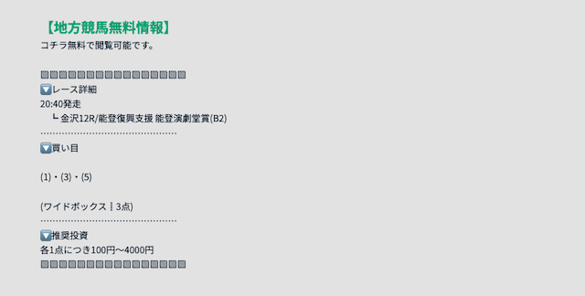 - 地方競馬予想も欲しい
