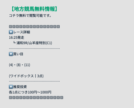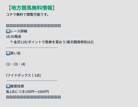 また先ほどの高評価で「稼げる」といった声が散見されたので、仮に的中精度が低くても数戦のトータルでプラス収支になる可能性があると言えます。