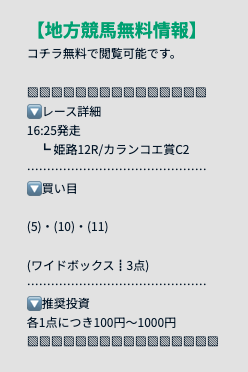 | 公開時間 | レース前日21時頃 |