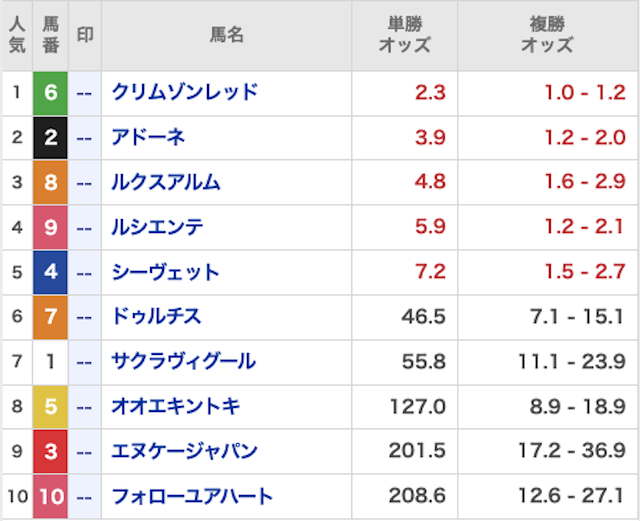 そんな難しい予想の中でどのような馬が選出したのか、最終オッズを確認してみました。