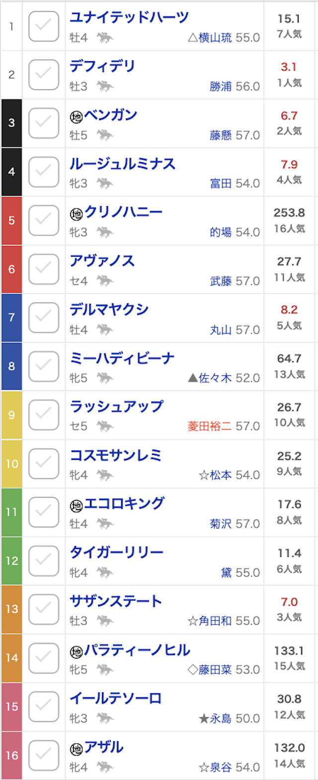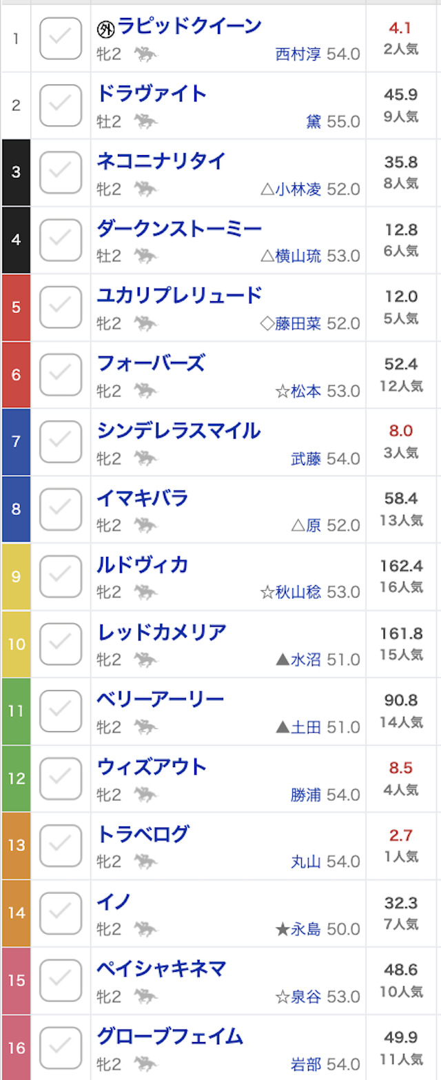 ウマセラが選んだのは上位人気の5頭。