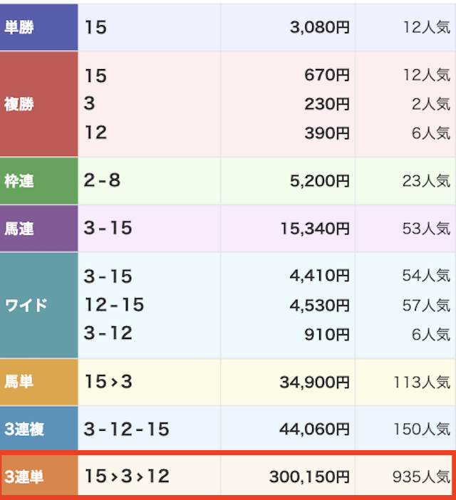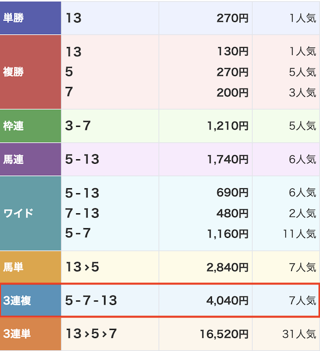 - ①-⑦-⑬(1番人気):15.3倍